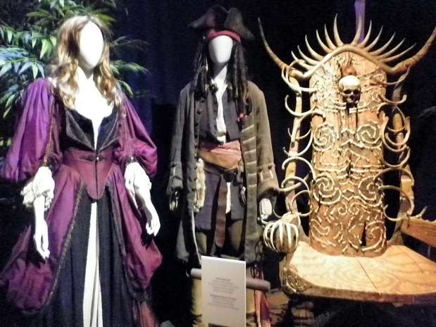 Vestuario de Johnny Depp y Keira Knightley figura en la exposición. Los accesorios se pueden ver en la Biblioteca Presidencial y Museo de Ronald Reagan en Simi Valley.